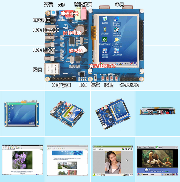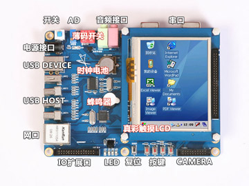 • 備注:獨有的硬件選擇啟動系統方案:開發板為Linux和Wince雙系統,可直接通過撥碼開關進行硬件選擇啟動的操作系統。這樣操作更加方便,也可使初學者朋友深入掌握硬件切換操作系統的方法。